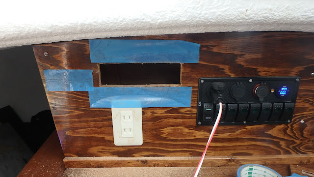 サブパネルの材料はキャビンキャビネットの開口部を切開けた時の残材、キャンプで燃してしまわずに良かったです。